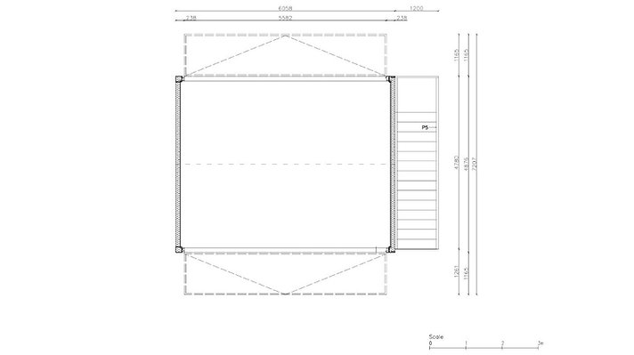 – Dimensions externes une fois déployé : Longueur de 7,4 m, largeur de 7,4 m et hauteur de 5,3 m.