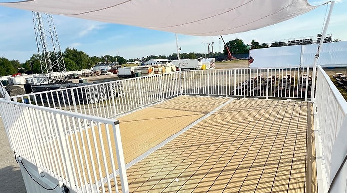 – Mécanisme d’ouverture des parois latérales : Les parois latérales du conteneur s’ouvrent grâce à des actionneurs électriques télécommandés, offrant un espace couvert supplémentaire de 15 m², idéal pour accueillir plus de participants ou exposer des équipements lors d’un événement.