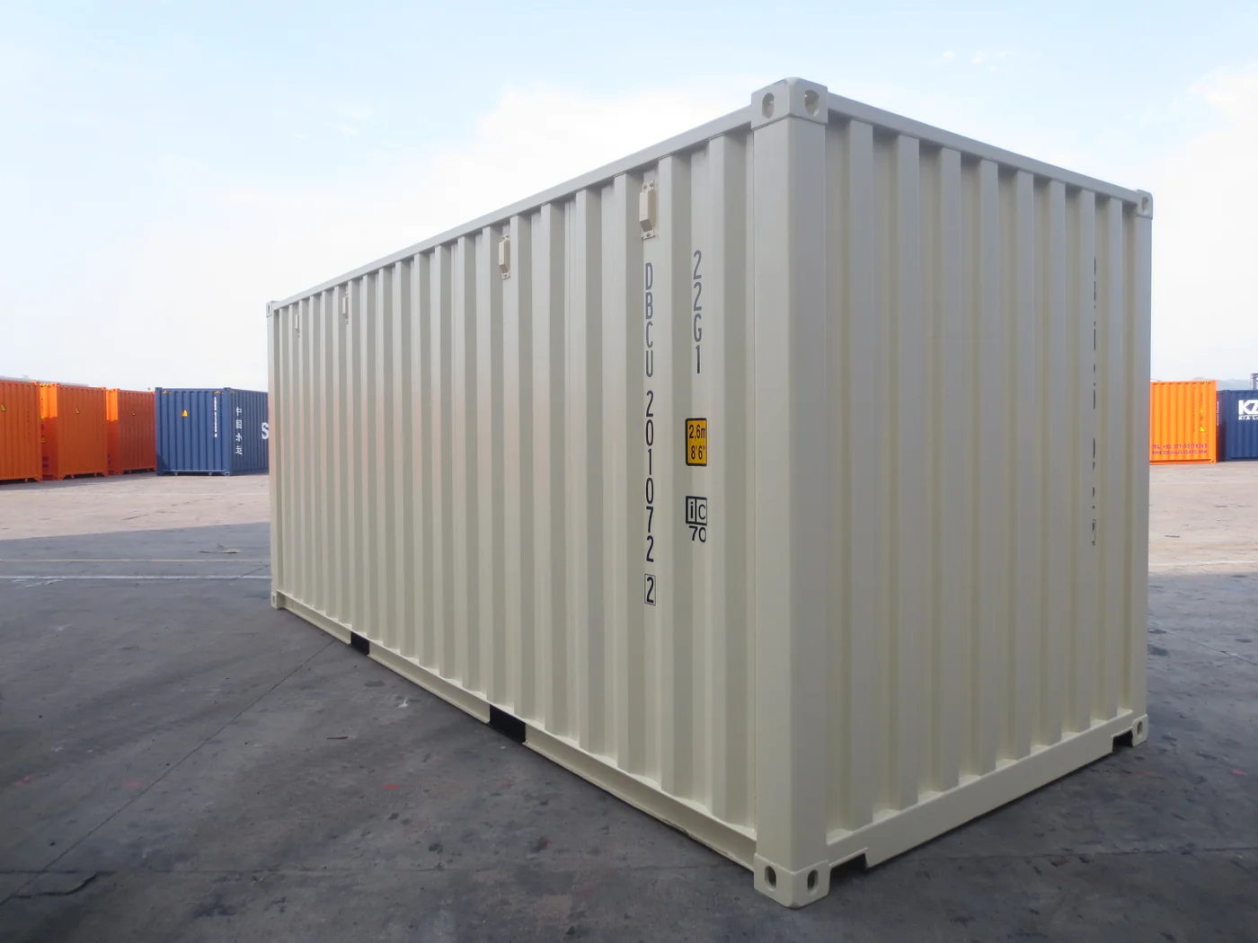 Le conteneur de 20 pieds en premier voyage est très solide grâce à sa structure en acier corten et à sa couverture verrouillable, garantissant la sécurité des produits entreposés. Les côtés et l’avant sont en tôle d’acier avec ventilation latérale, et il dispose d’une double porte avec des grilles de fermeture. Ces conteneurs sont étanches à l’eau et à l’air, avec des planchers en bois posés sur des traverses en acier.