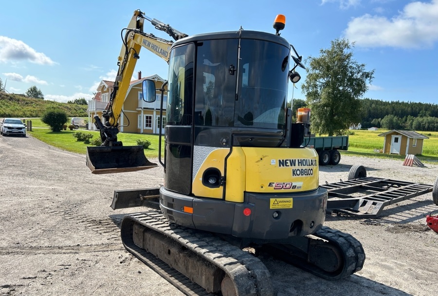Mini-pelle d’occasion New Holland E50B SR (2012) – 5,1T + Remorque