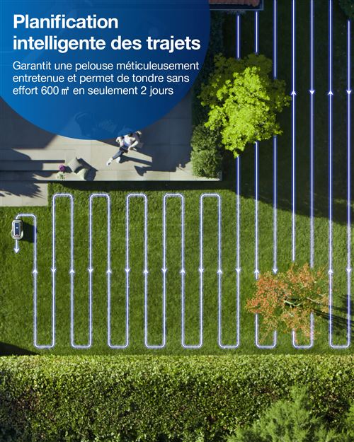 Planification intelligente de la trajectoire : La GX-600 utilise une technologie de planification intelligente pour tondre la pelouse selon un schéma logique, rendant ainsi le processus plus efficace. Cela réduit le temps perdu à cause des reprises manuelles dues à une coupe aléatoire, garantissant une pelouse soignée et agréable, vous permettant ainsi de profiter davantage de votre temps libre.